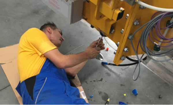 走進(jìn)EBAWE生產(chǎn)線的安裝現(xiàn)場(chǎng),一臺(tái)臺(tái)大型的自動(dòng)化生產(chǎn)設(shè)備已安裝完成,一座現(xiàn)代化的廠房已見(jiàn)雛形。廠區(qū)內(nèi)數(shù)十位工人正在全力協(xié)助EBAWE派駐的外籍工程師們進(jìn)行安裝調(diào)試。據(jù)了解,目前預(yù)制構(gòu)件生產(chǎn)線的主要設(shè)備碼垛機(jī)、翻轉(zhuǎn)機(jī)、振動(dòng)密實(shí)裝置、混凝土布料機(jī)、模臺(tái)清潔裝置和脫模劑噴灑裝置等已完成安裝通電及初步調(diào)試,魚(yú)雷罐、養(yǎng)護(hù)窯、防護(hù)網(wǎng)、外運(yùn)機(jī)、保溫板切割機(jī)以及鋼筋機(jī)生產(chǎn)線部分也在緊張有序的安裝中。通過(guò)工人們近兩天的吊裝,一張張嶄新的模臺(tái)已基本擺放到位,等待傳動(dòng)裝置的最終測(cè)試。