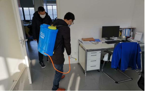 復(fù)工后,所有員工上午進(jìn)入廠區(qū)前、下午在工作崗位上兩次測量體溫,在工作崗位配戴口罩,工作期間勤洗手、不扎堆、不聚集,定時(shí)開窗通風(fēng)。生產(chǎn)、辦公、生活各區(qū)域?qū)H硕〞r(shí)殺菌消毒。食堂實(shí)行分批就餐,所有員工單一坐向,盡可能分散就餐。