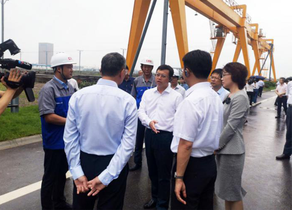 網(wǎng)站當(dāng)前位置:網(wǎng)站首頁(yè) >新聞中心 > 公司新聞6月29日上午,鹽城市高質(zhì)量發(fā)展項(xiàng)目觀摩推進(jìn)會(huì)現(xiàn)場(chǎng)觀摩活動(dòng)在我公司一號(hào)車間舉行。市委書記、市人大常委會(huì)主任戴源,市委副書記、市長(zhǎng)曹路寶率各市縣區(qū)主要領(lǐng)導(dǎo)以及市屬重點(diǎn)產(chǎn)業(yè)園區(qū)負(fù)責(zé)人200余人在中鷹裝配董事長(zhǎng)吳啟林、副總經(jīng)理李營(yíng)、副總經(jīng)理戴啟成的陪同下對(duì)我公司項(xiàng)目現(xiàn)狀進(jìn)行了觀摩考察。